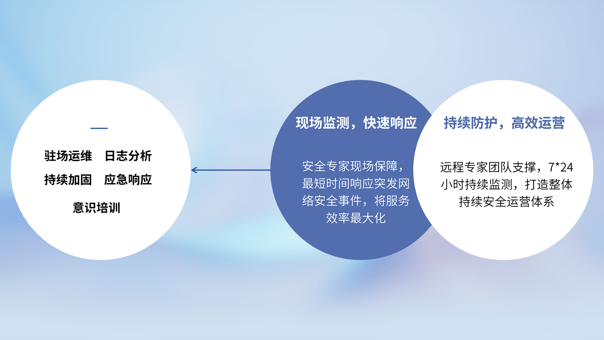 针对客户行业特性,,提供专属的一站式安全管理服务,,,,帮助客户全面感知网络空间威胁,,,,通过安全专家的线上、、线下防护支持,,,,实现风险闭环,,,将安全保障常态化,,为客户打造常态化安全运维运营服务。。。